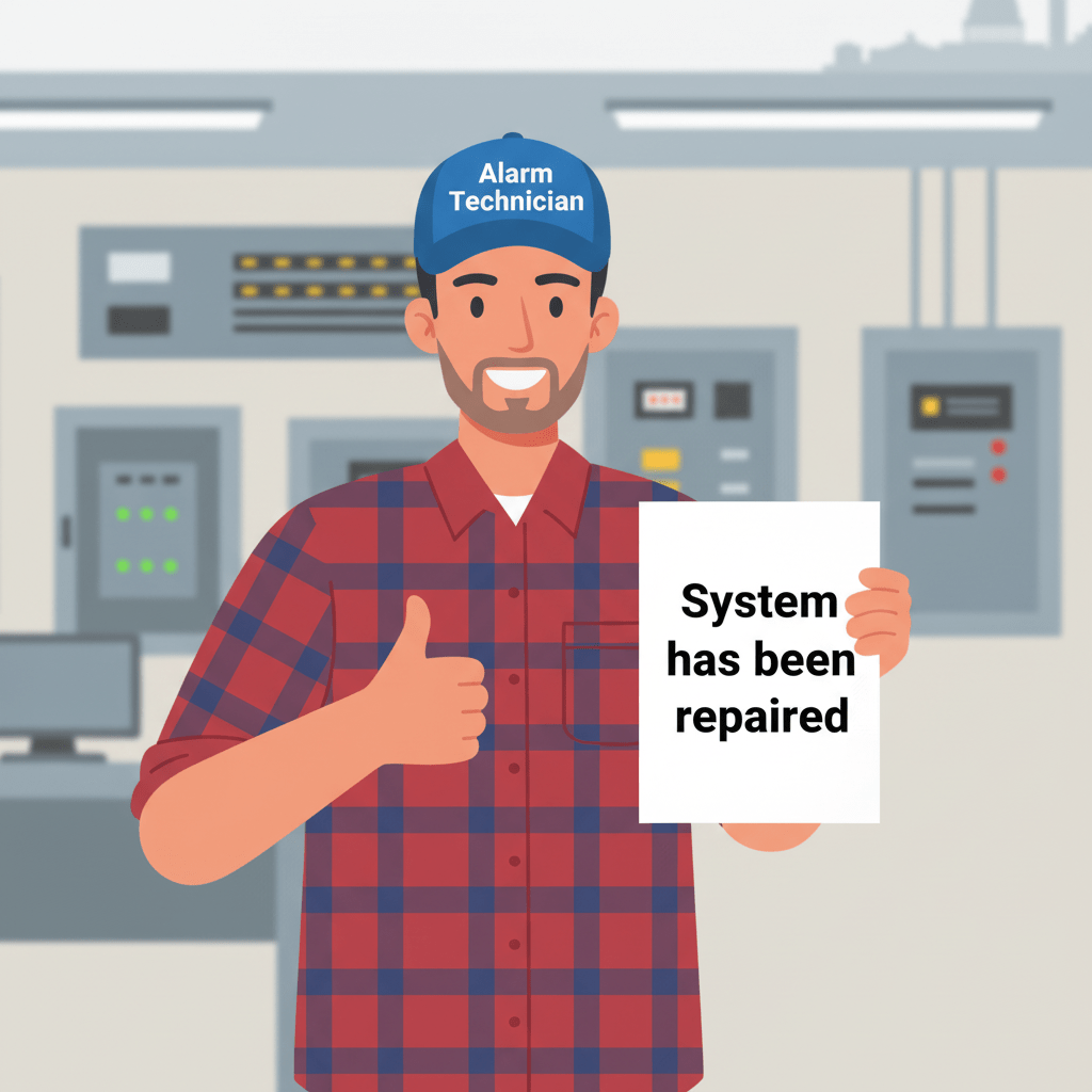 Your alarm or monitoring company needs to give you a document that clearly states the system is 100 percent back in service. If the issue involved a system that could not dial out, the document needs to state that the system is now communicating properly. This can be a service ticket, completion report, or monitoring notice. The most important thing is that it comes from the repair company or monitoring company and clearly states the system is fully restored/100 percent in service. When you request this on the same visit as the repair, you avoid delays and prevent extra time on fire watch due to delayed paperwork.