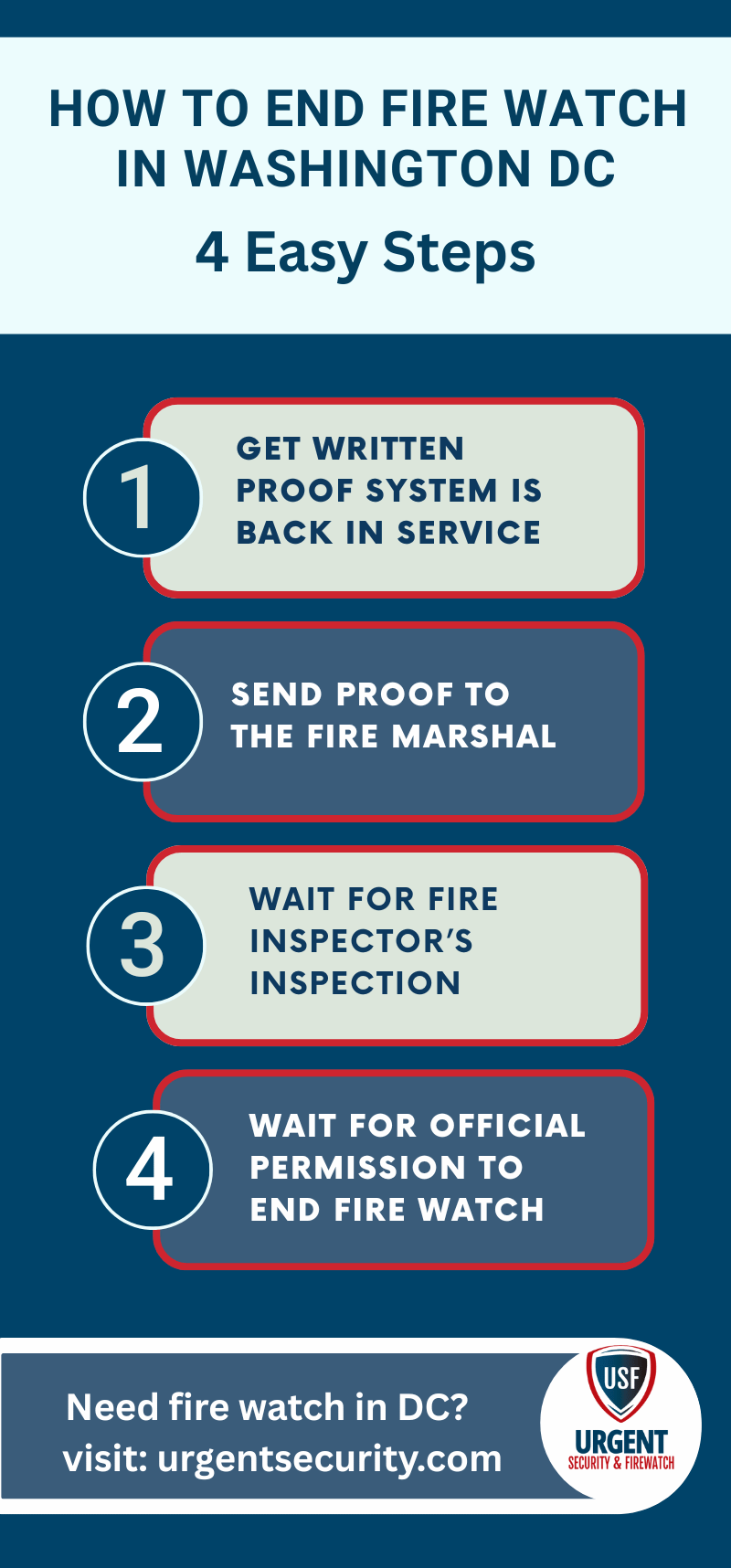 quick steps to end fire watch in Washington dc